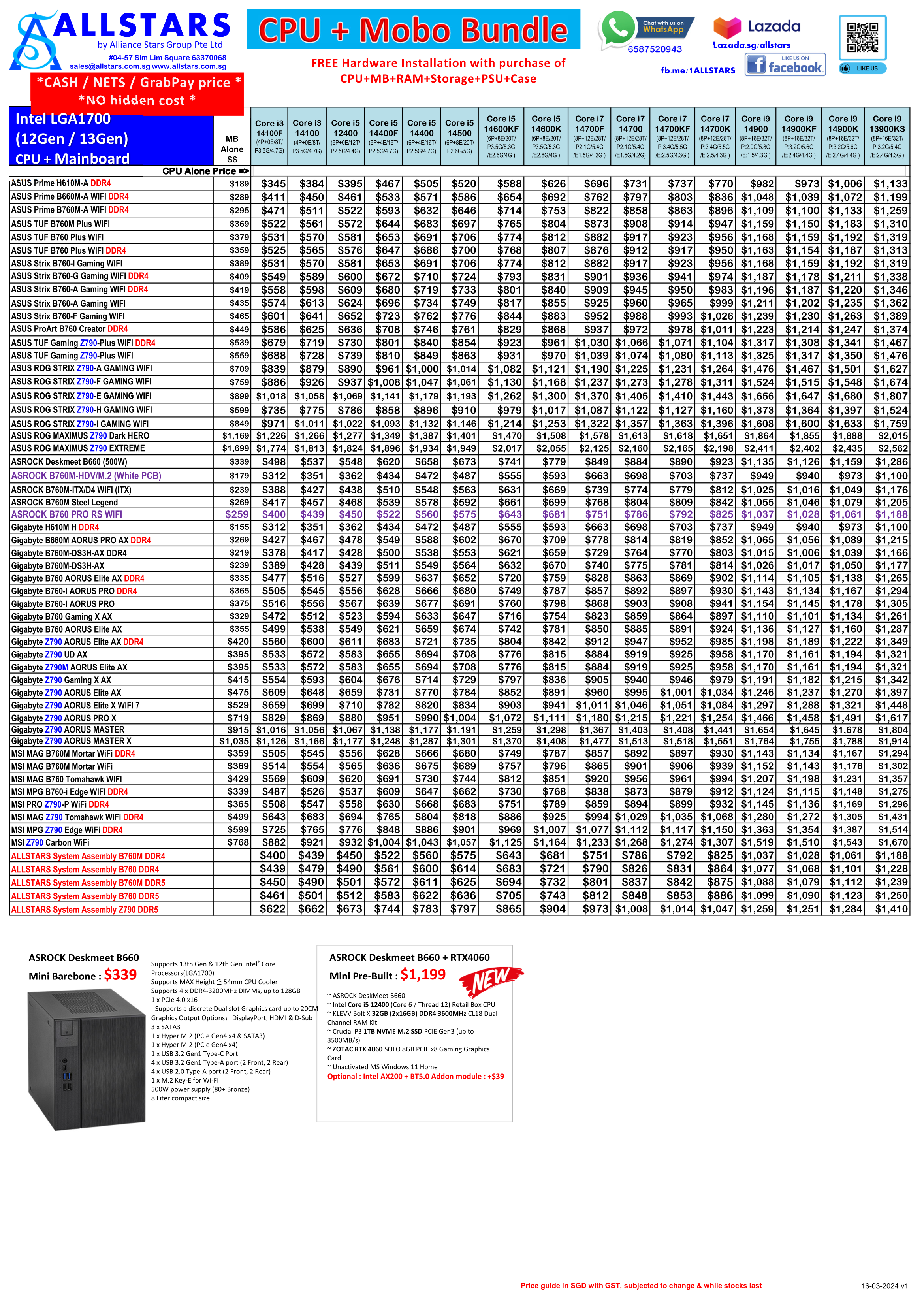 The Price List presented here are provided “AS IS” for the convenience for the user of this site and without warranties of any kind. Do counter check the accuracy of the information before using it. www.SGPCFair.com is not affiliated with any of the companies/shops/vendors or suppliers contained/mentioned in this page. Copyright of the Price List & any Trademarks that might appear belongs to their respective owner(s).